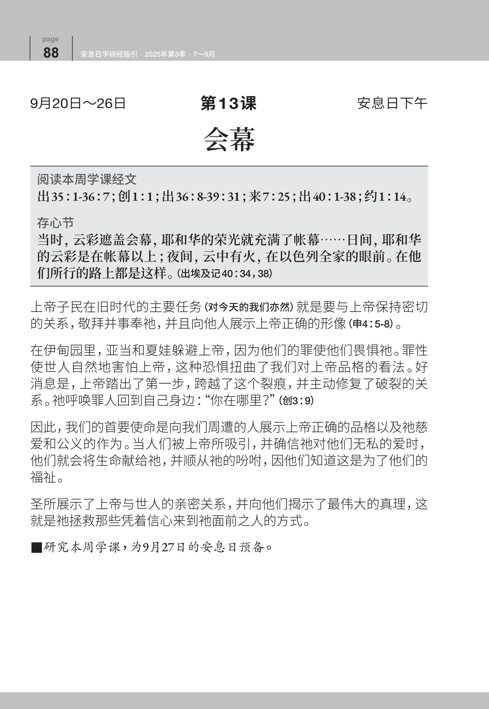 第13课:会幕 分享:韩天晓 | 9月24日,2025 https://www.nidehua.net/wp-content/uploads/2025/09/会幕.m4a 喜欢作者,谢谢您的爱心 ▼ 您可以点击以下标签,查看更多的栏目专辑 安息日学 加微信防失联 首页