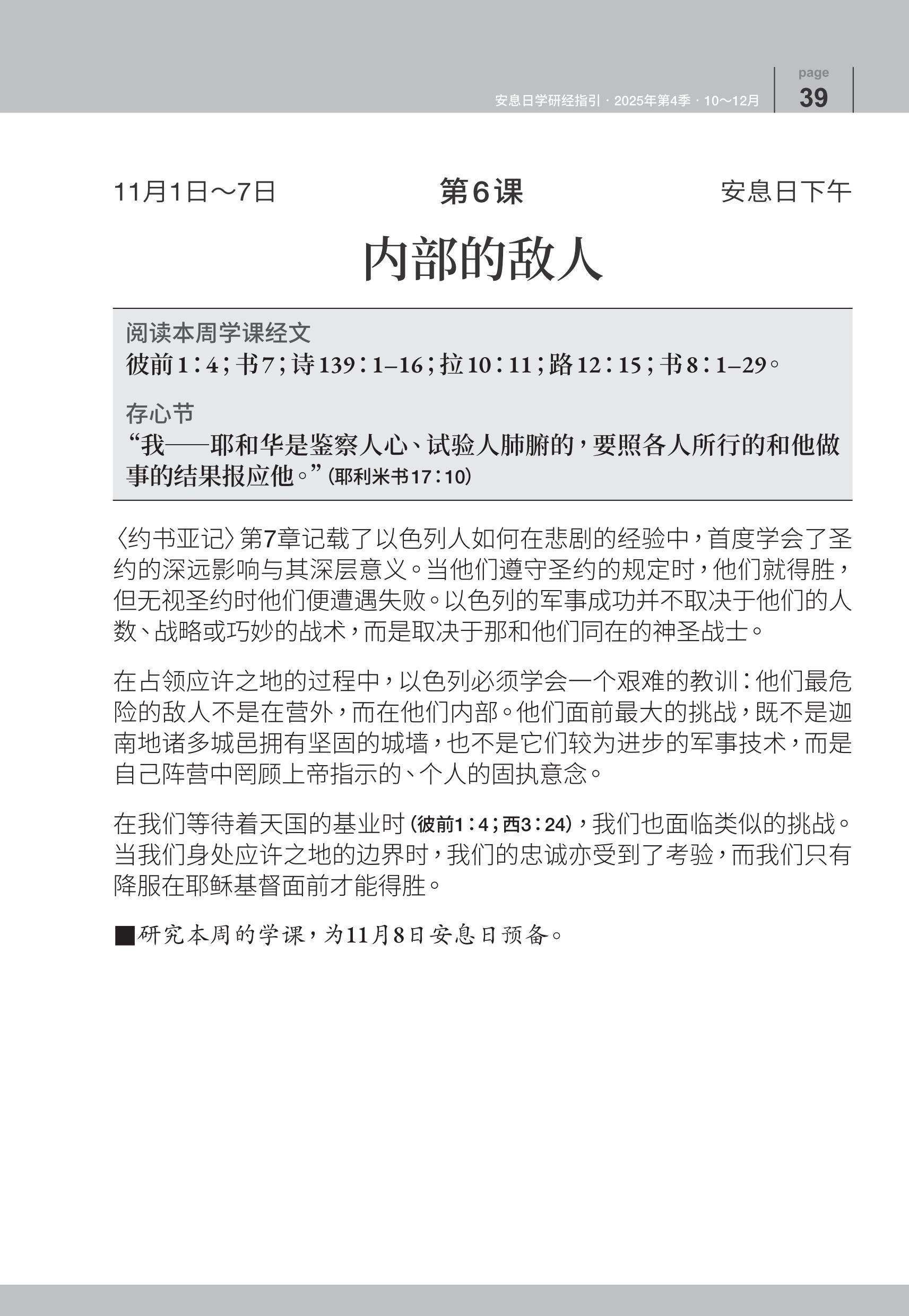 第6课:内部的敌人 分享:韩天晓 | 11月2日,2025 https://www.nidehua.net/wp-content/uploads/2025/11/内部的敌人.m4a 喜欢作者,谢谢您的爱心 ▼ 您可以点击以下标签,查看更多的栏目专辑 安息日学 加微信防失联 首页